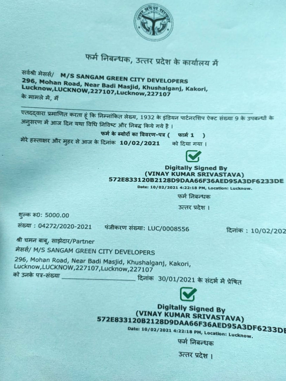 SANGAM GREEN CITY DEVELOPERS